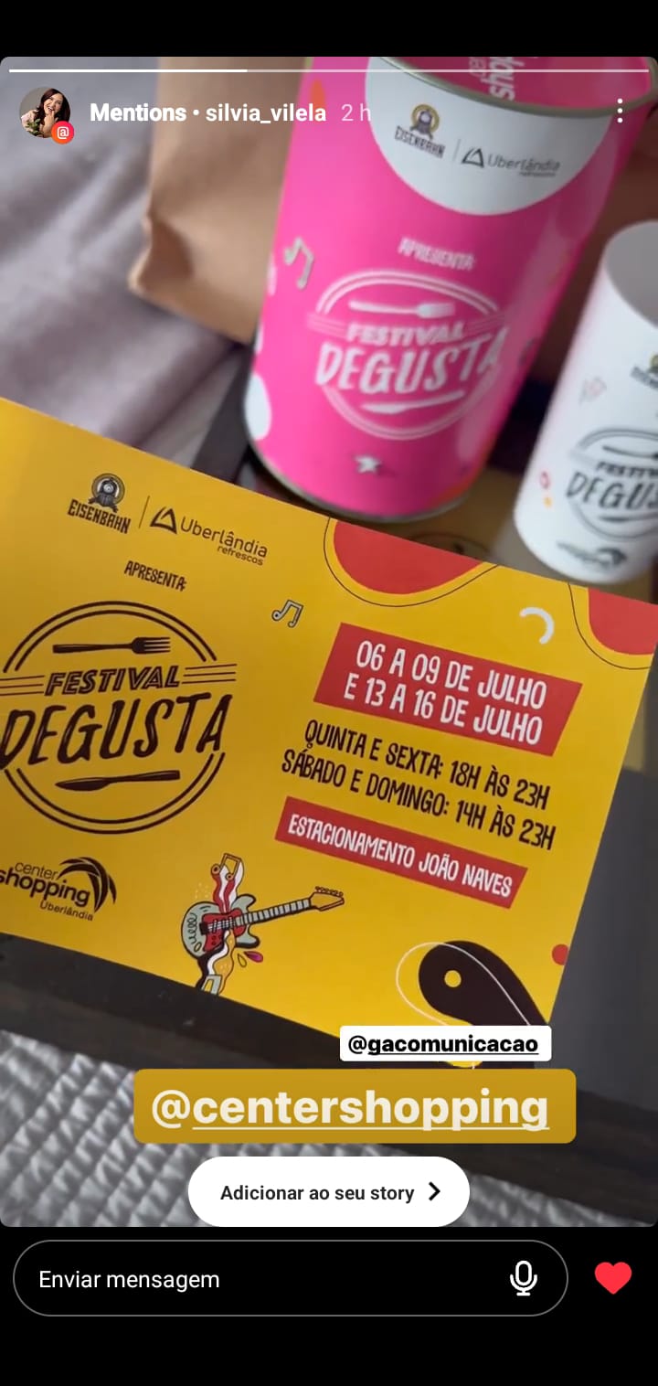 STORY - @silvia_vilela - Press Kit vem aí a 4ª edição do Festival Degusta do Center Shopping! - 07.07