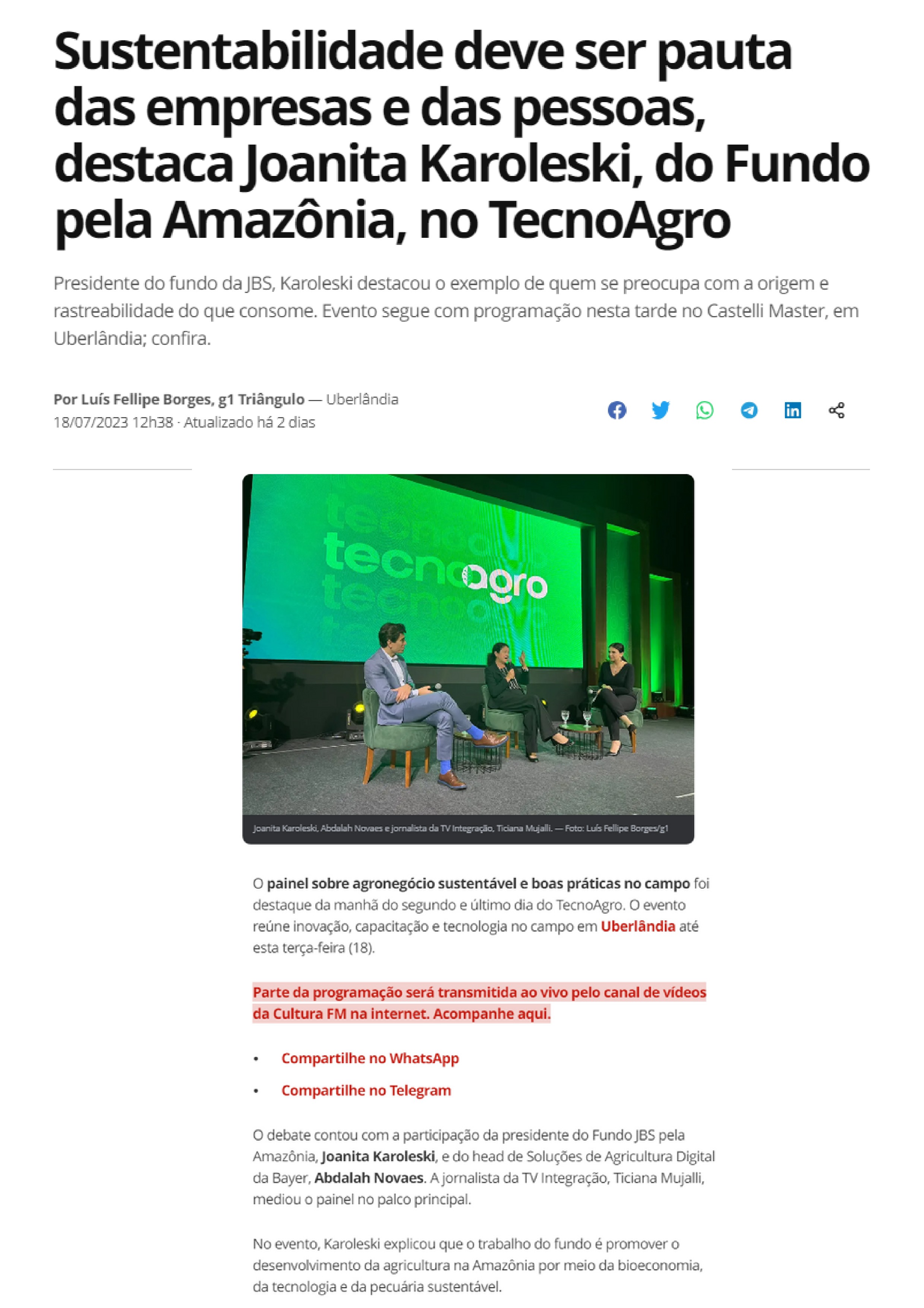 https://g1.globo.com/mg/triangulo-mineiro/agronegocios/noticia/2023/07/18/sustentabilidade-deve-ser-pauta-das-empresas-e-das-pessoas-destaca-joanita-karoleski-do-fundo-pela-amazonia-no-tecnoagro.ghtml