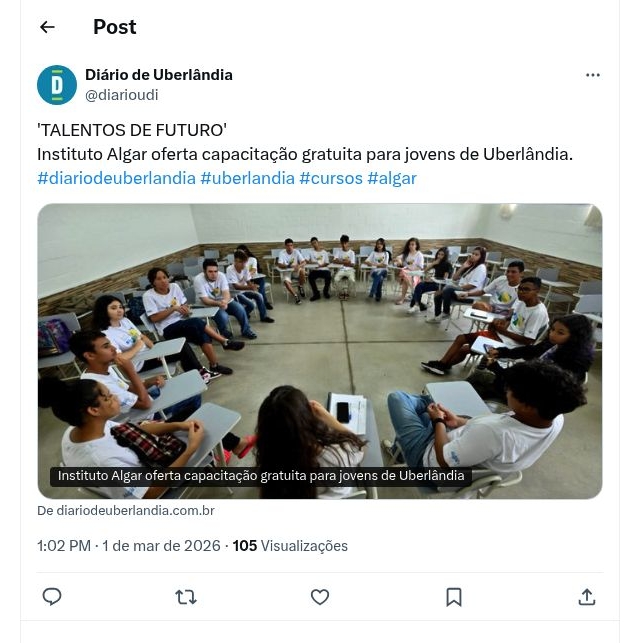 'TALENTOS DE FUTURO' Instituto Algar oferta capacitação gratuita para jovens de Uberlândia.