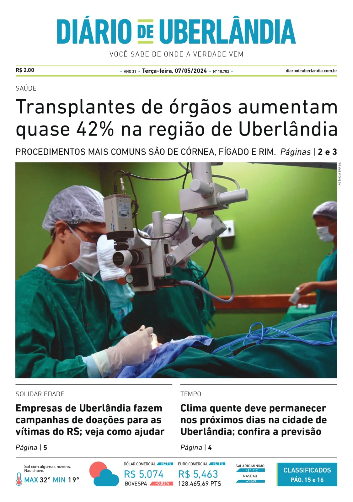 Transplantes de órgãos aumentam quase 42% na região de Uberlândia- 07.05