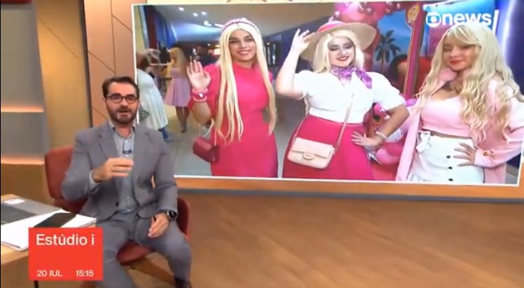 TV GLOBO NEWS - Estudio I - Chamada Estreia filme da Barbie no Cinépolis Center Shopping Uberlândia - 20.07