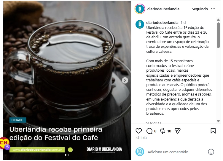 Uberlândia receberá a 1ª edição do Festival do Café entre os dias 23 e 26 de abril.