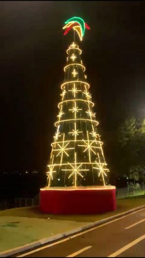 Instalada às margens da represa, perto da portaria do bairro Santa Mônica, a árvore chega com um espetáculo visual digno de grandes capitais, com micro-LEDs distribuídos em camadas que acendem de forma coordenada, criando movimentos de luz que envolvem o público e convidam a múltiplos olhares. A sensação é de que a árvore respira o espírito do Natal.