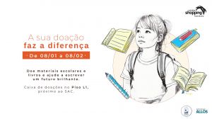 A iniciativa acontece de 8 de janeiro a 8 de fevereiro e recebe doações no Piso L1 do shopping, destinadas a crianças em situação de vulnerabilidade social