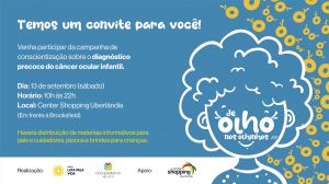 Promovida pelo Grupo Luta Pela Vida, em parceria com o setor de Oncopediatria do Hospital de Clínicas da Universidade Federal de Uberlândia (HC-UFU/Ebserh), oftalmologistas pediátricos da rede pública e privada, e o Center Shopping, a iniciativa tem como objetivo disseminar informações sobre a doença e reforçar os sinais de alerta que devem ser observados nas crianças.